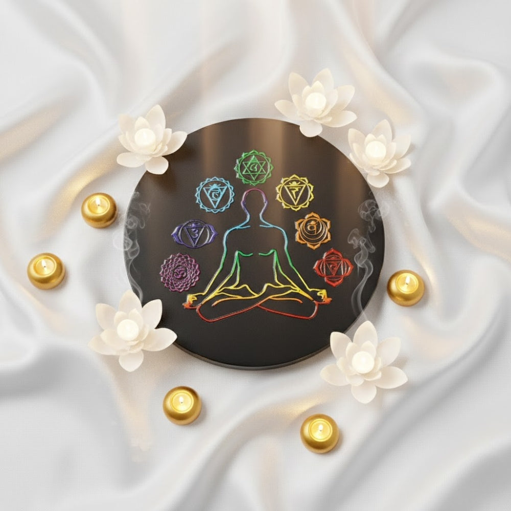 About the Product: The 7 Chakra Black Obsidian Plate is a powerful healing and energy-balancing tool designed to align and harmonize the body’s seven chakras. Black obsidian is known for its strong grounding and protective properties, helping to absorb negative energies and promote emotional stability. The engraved seven chakra symbols support balanced energy flow and spiritual alignment.