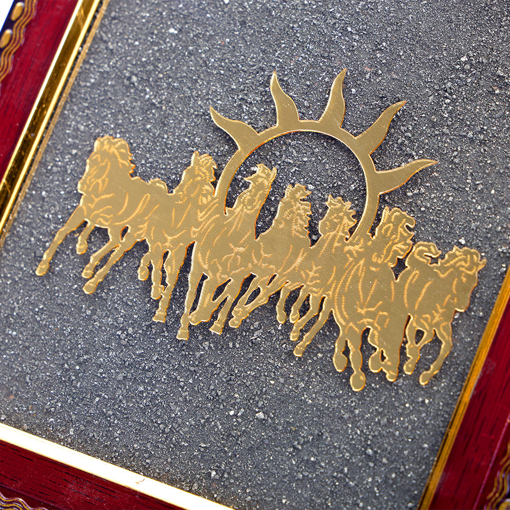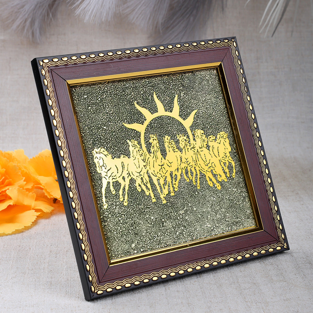 7 Horses Pyrite Frame | Raw Pyrite Crystal Frame | Wealth Attraction Decor | Pyrite Vastu Frame | Seven Horses Vastu Decor | Prosperity Crystal Frame
