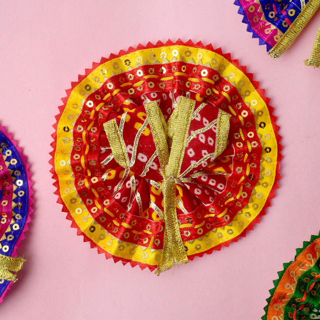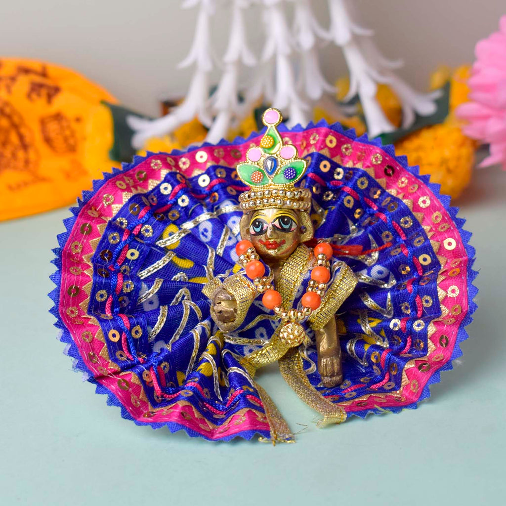 Expertly crafted for a perfect fit, this dress comes in sizes 1 and 2, and is available in stunning shades of red, yellow, pink, orange, green, and blue. Wrap your divine Laddu Gopal in the splendour of Bandhani artistry and bring ethnic charm to your temple dΓ©cor.