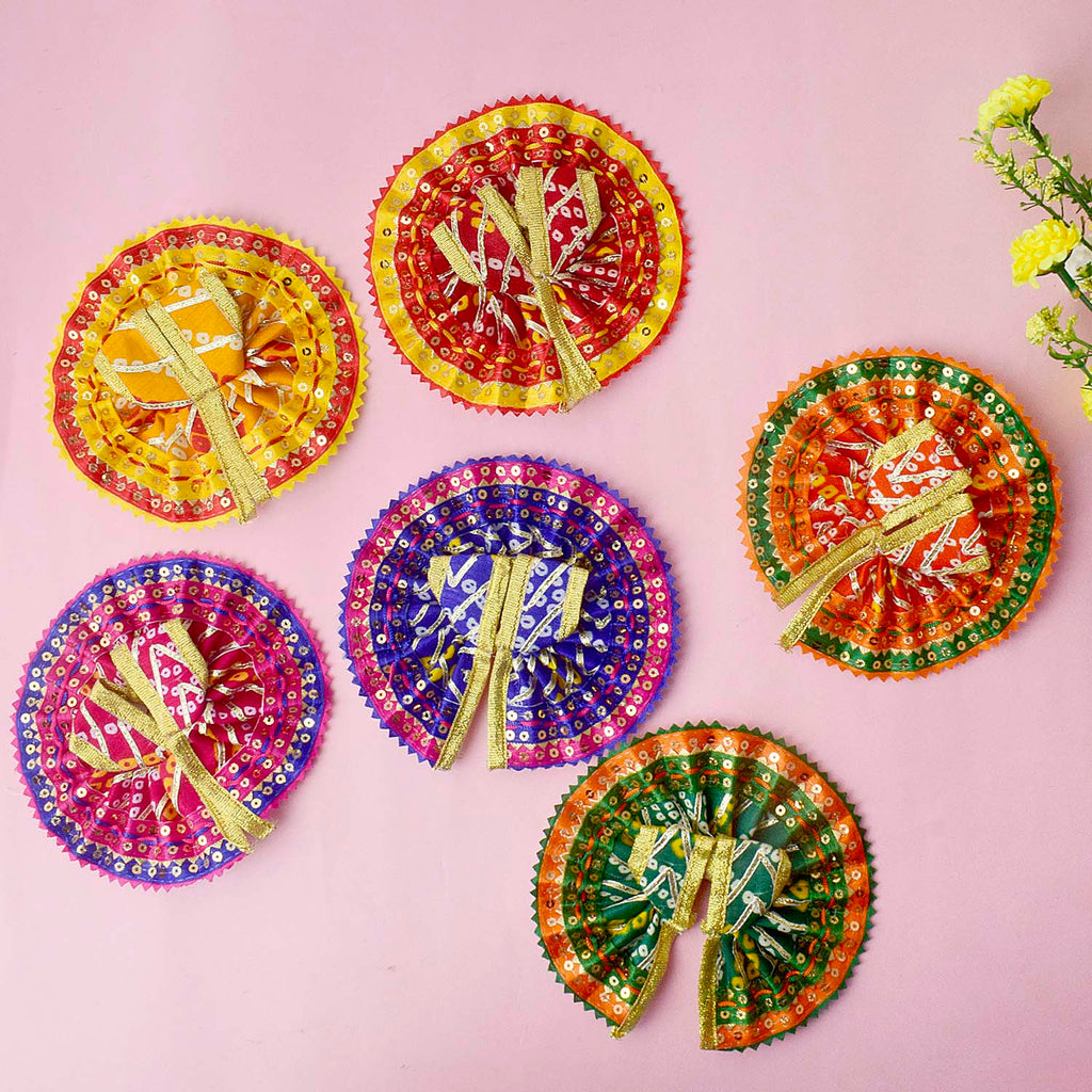 Add a splash of cultural beauty to your pooja rituals with this captivating Bandhani print Laddu Gopal dress. Inspired by timeless Indian textile traditions, this delightful attire features traditional bandhej patterns and an array of vivid colours, perfect for Janmashtami, daily darshan, or festive occasions.