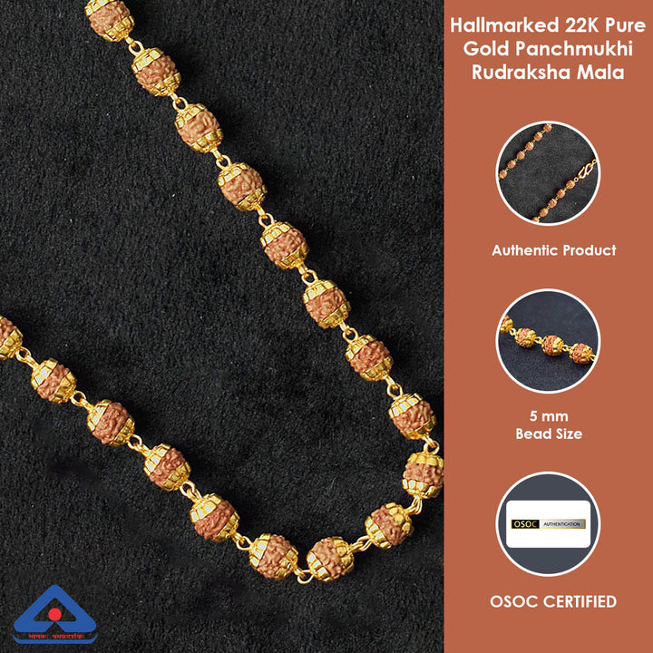 Hallmarked 22K Pure Gold Panchmukhi Rudraksha Mala