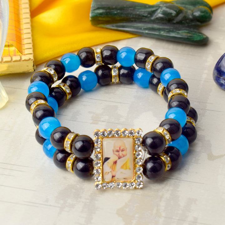 Our Guruji bracelet is a tangible symbol of divine connection. Crafted with care and reverence, it is designed to be worn close to your heart, serving as a constant reminder of Guruji's presence. The bracelet is adorned with sacred symbols and gemstones that hold spiritual significance, channeling positive energy and protection.