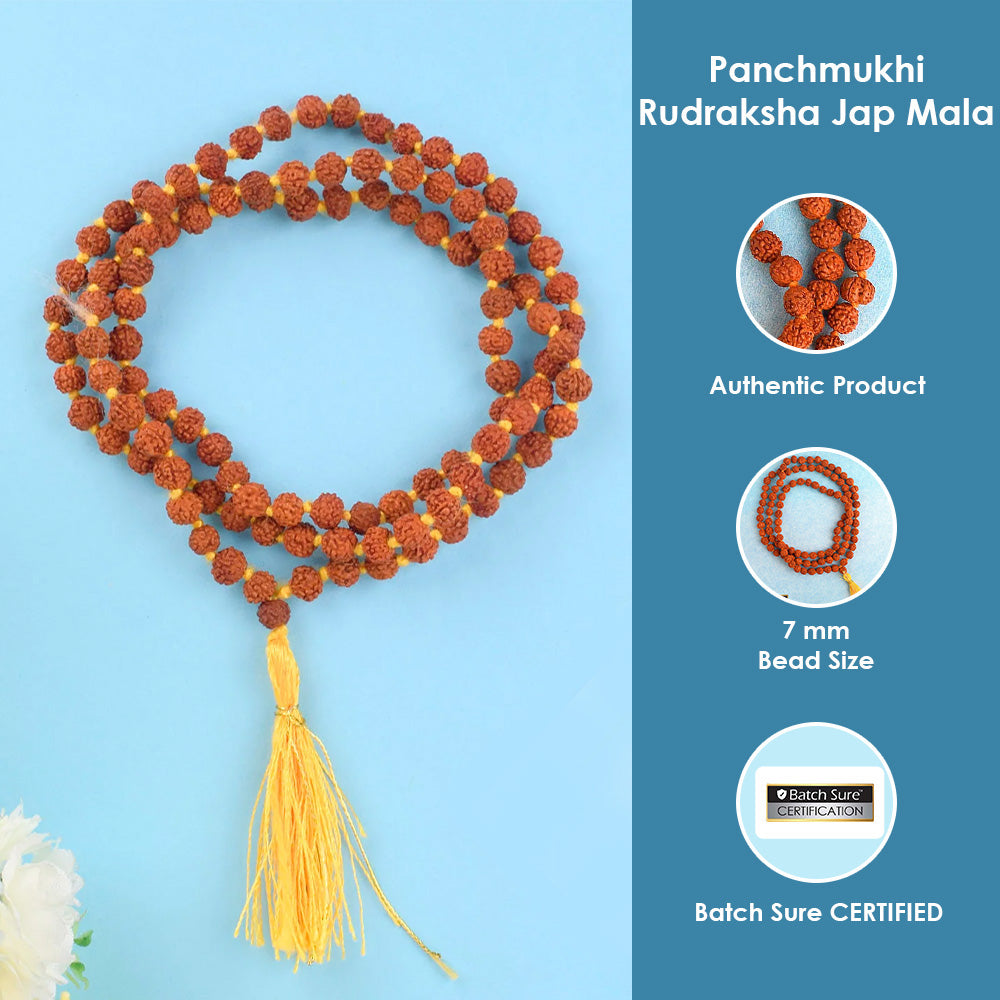 • Package Contains: 1 Pc of  Panchmukhi Rudraksha Jaap Mala.