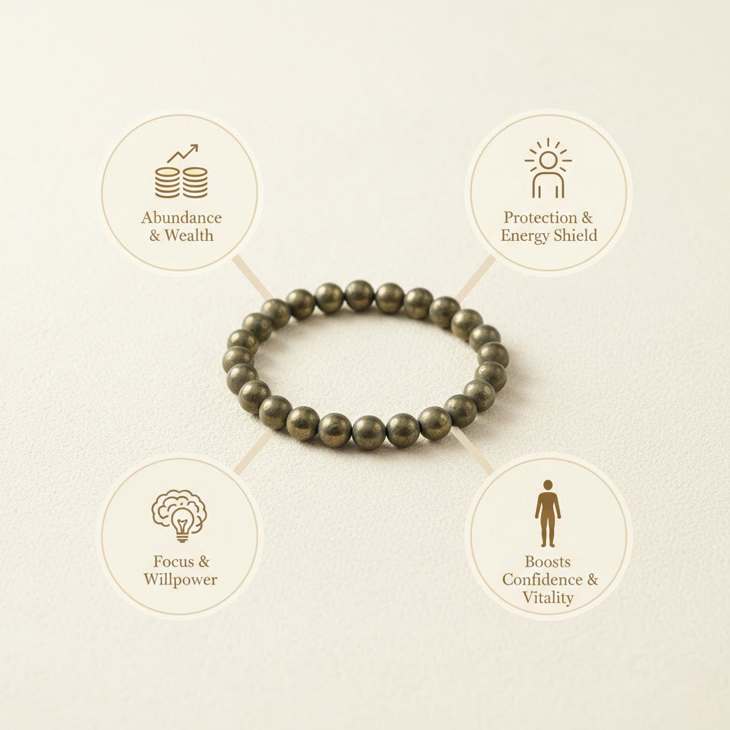 Raw Pyrite is known as the Stone of Wealth, helping attract abundance and confidence. Rose Quartz is the Stone of Love, supporting emotional healing and harmony in relationships. Black Obsidian with Evil Eye protects against negative energies and jealousy. The Hanuman Chalisa Pendant invokes spiritual strength, devotion, and protection from harm. Together, this combo creates a holistic energy set for daily wear, meditation, and spiritual alignment.