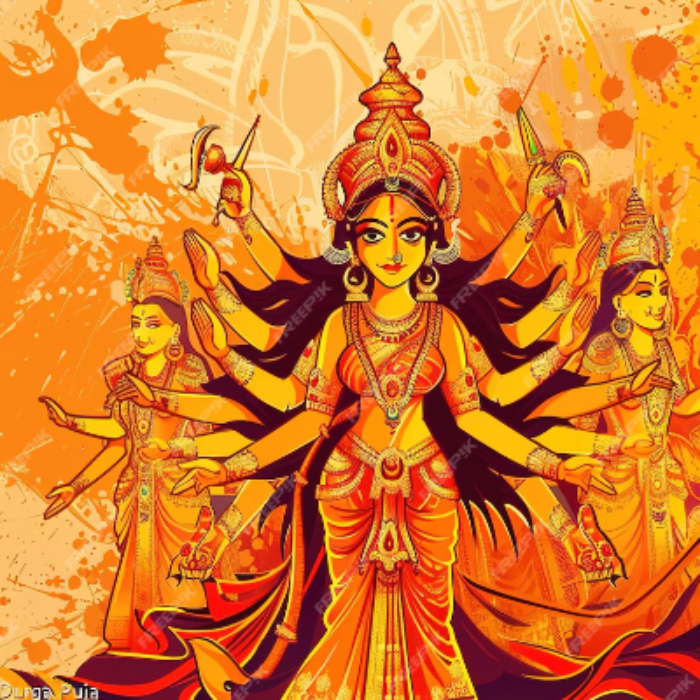 This festival basically involves the worshipping of 3 hindu goddess. The Goddess Durga 9 faces can be interpretated with many qualities including power, truth, education, love, angry, tranquilly. Navratri is primarily a festival celebrating womenhood & its Power, with focus on goddess that is Maa Durga who is worshipped in all forms.