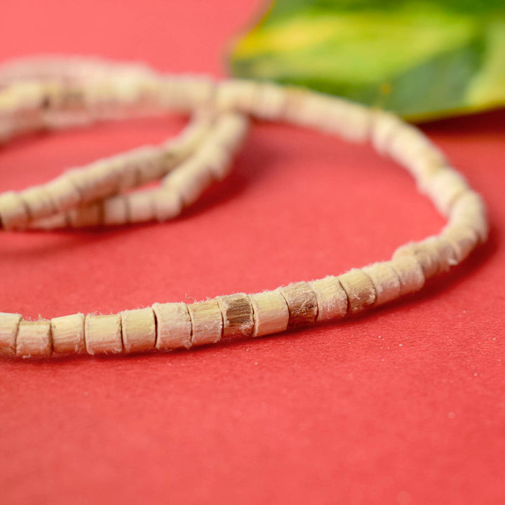 • The beads are handcrafted after removing the outer skin (bark) of the stem.