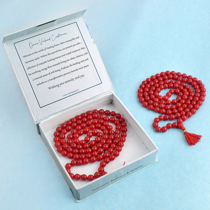 Hakik Jap Mala (Red Coral) | Red Coral Jap Mala for Strength & Protection | Crystal Mala for Confidence & Vitality | Meditation Beads for Root & Sacral Chakra | Healing Mala for Passion & Energy | Red Coral Hakik Mala for Courage & Stability |Β