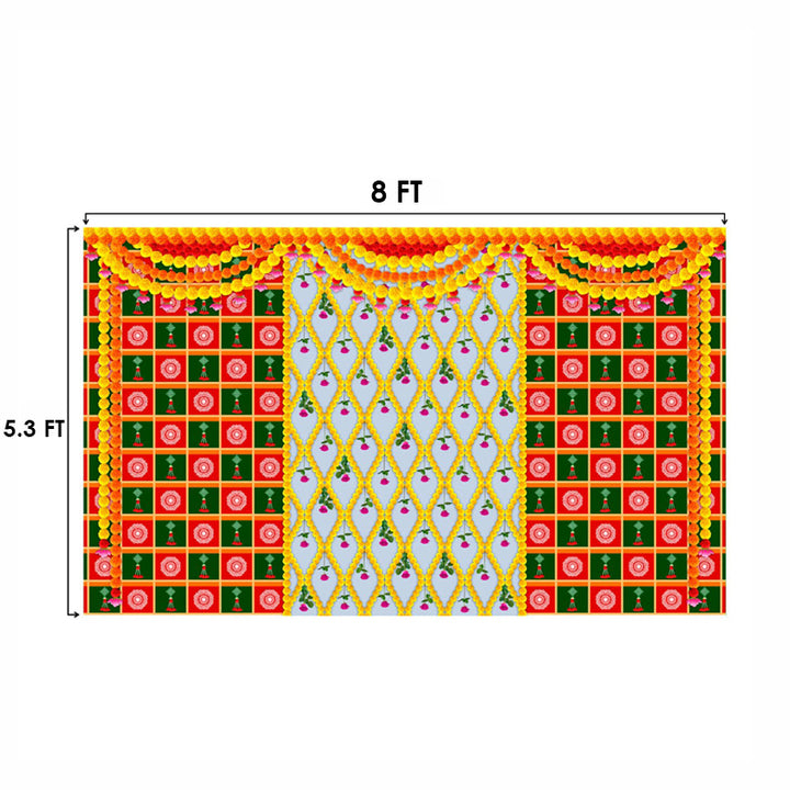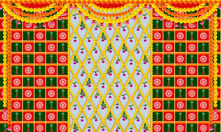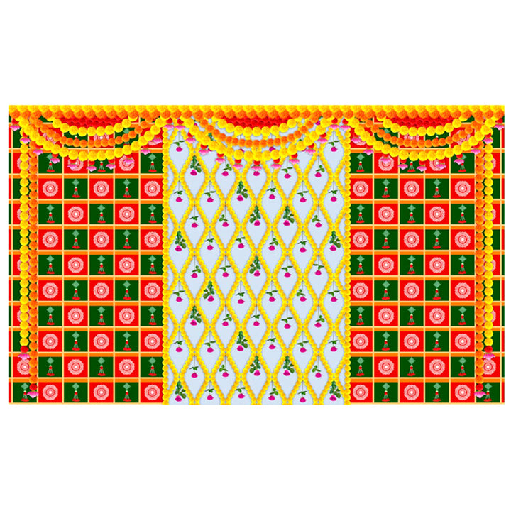About Product: Stunning printed background Cloth is utilised for all ceremonies and celebrations, particularly during poojas for Satyanarayana and Haldi Functions. easy to clean and maintain. made from premium Taiwan Polyester fabric. It is simple to use and maintain because the fabric is washable. It can be cleaned with a household solution to remove any stains, and you may use it again for any occasion at home.