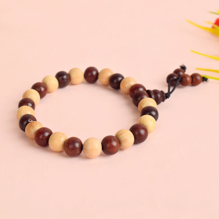 About the Product: The White & Red Sandalwood Bracelet is a divine spiritual accessory crafted from premium quality sandalwood beads. White sandalwood represents purity, calmness, and mental clarity, while red sandalwood is known for its grounding, healing, and energizing vibrations. Together, these sacred woods form a perfect balance of serenity and strength.