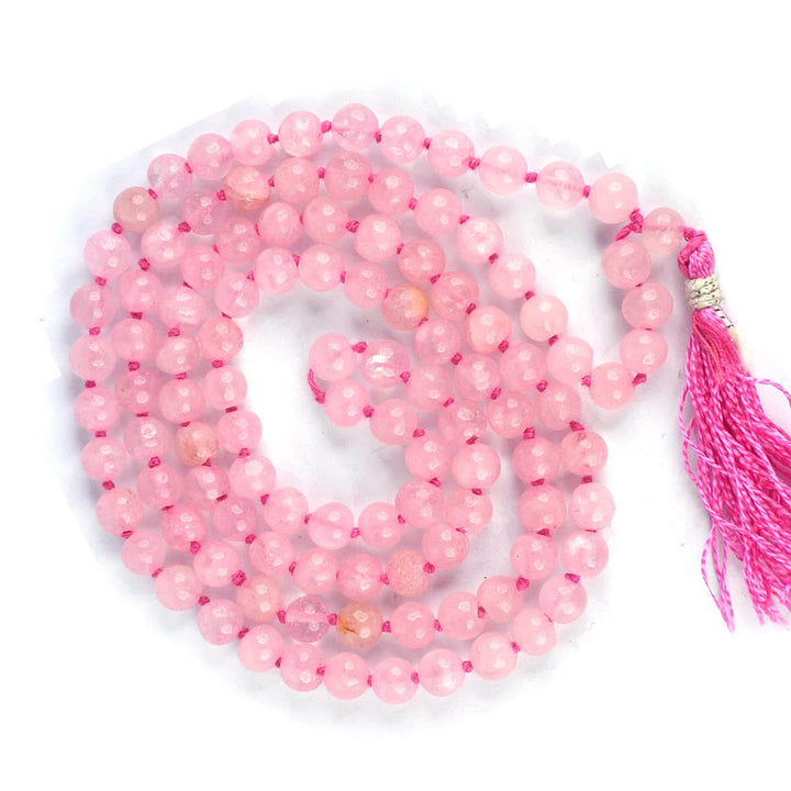 108 Beads Rose Quartz Crystal Jaap Mala for Chakra Healing