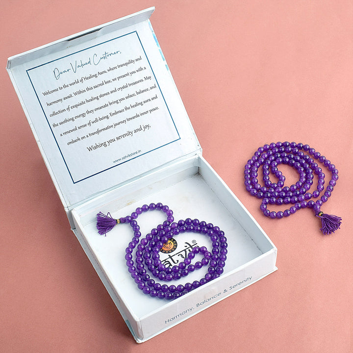 • Item Name: Premium Hakik Jap Mala (Purple) Amethyst