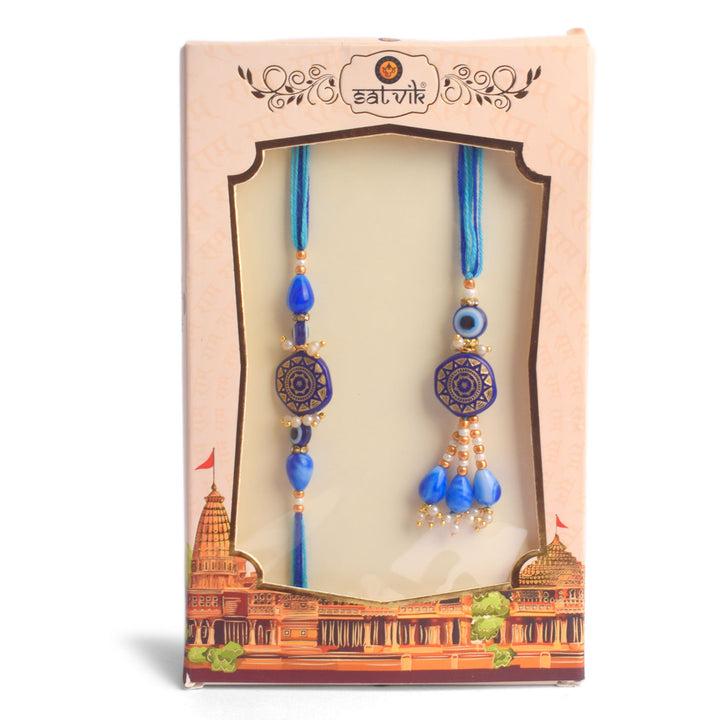 Bold and Beautiful Evil Eye Beaded Bhaiya Bhabhi Rakhi Set