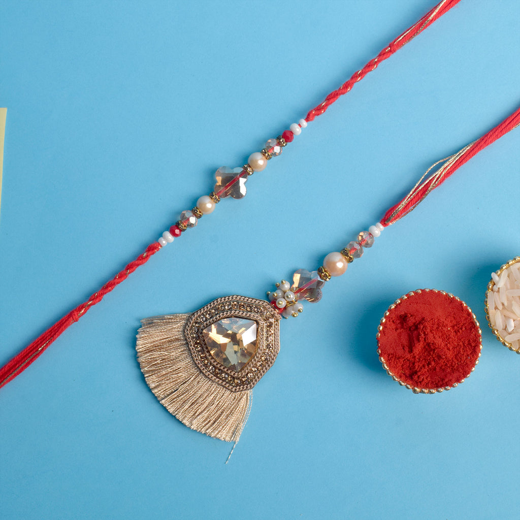 For those looking for a touch of elegance and uniqueness, our Agate Stone Bhaiya Bhabhi Rakhi collection is an ideal choice. The Agate stone, with its mesmerizing patterns and vibrant hues, adds a touch of sophistication and charm to these Rakhis. The Agate Stone Bhaiya Bhabhi Rakhi set is a perfect blend of spirituality, style, and protection, symbolizing the divine blessings and the unbreakable bond between the couple.