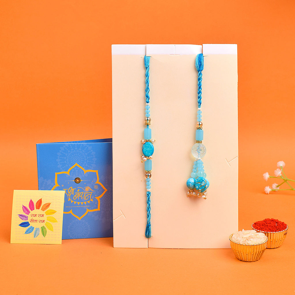 • Package: 1 Men Rakhi, 1 Women Lumba Rakhi, Roli Chawal Pack, Ram & Sita Theme Stickers