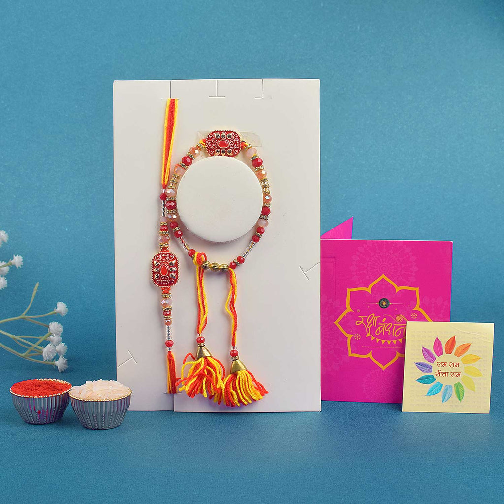Couple Rakhi Set | Bhaiya Bhabhi Rakhi | Rakhi with Ram Sita Stickers | Rakhi with Roli Chawal | Lumba Rakhi Set | Designer Rakhi Combo | Rakhi for Brother and Sister-in-law | Rakhi Online Shopping | Raksha Bandhan Gift Set | Rakhi Combo Pack