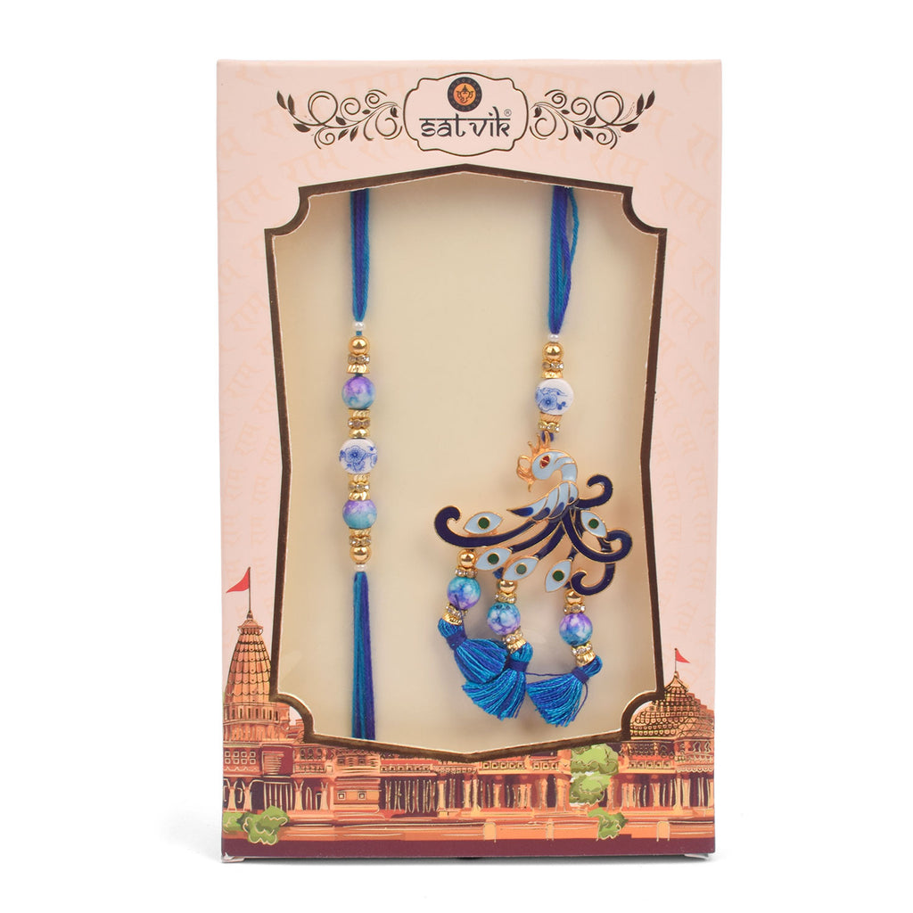 • Package: 1 Men Rakhi, 1 Women Lumba Rakhi, Roli Chawal Pack, Ram & Sita Theme Stickers
