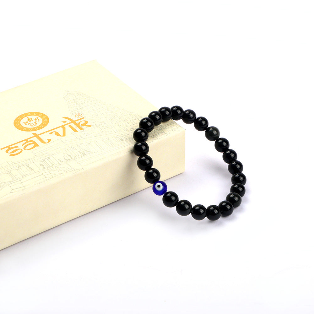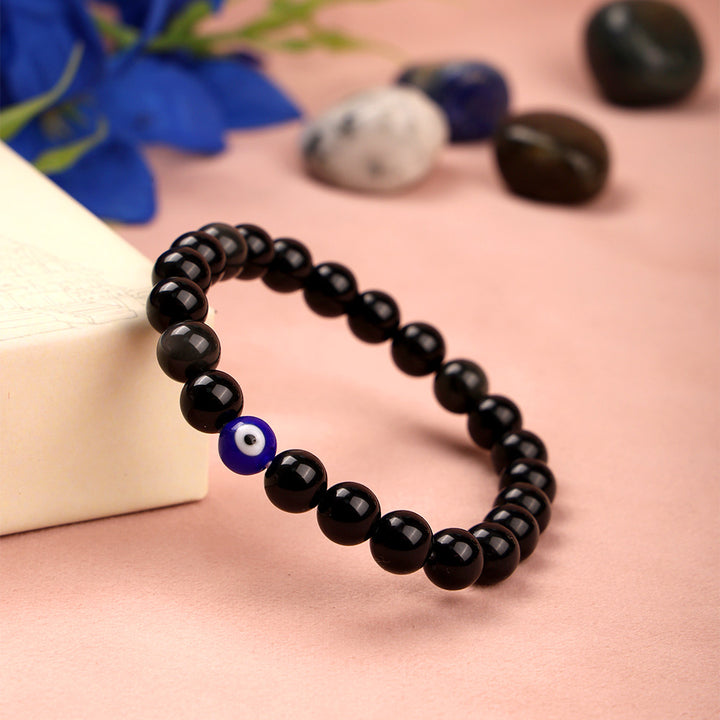 Buy Black Obsidian Evil Eye Healing Stone Bracelet | Satvikstore.in – satvikstore.in