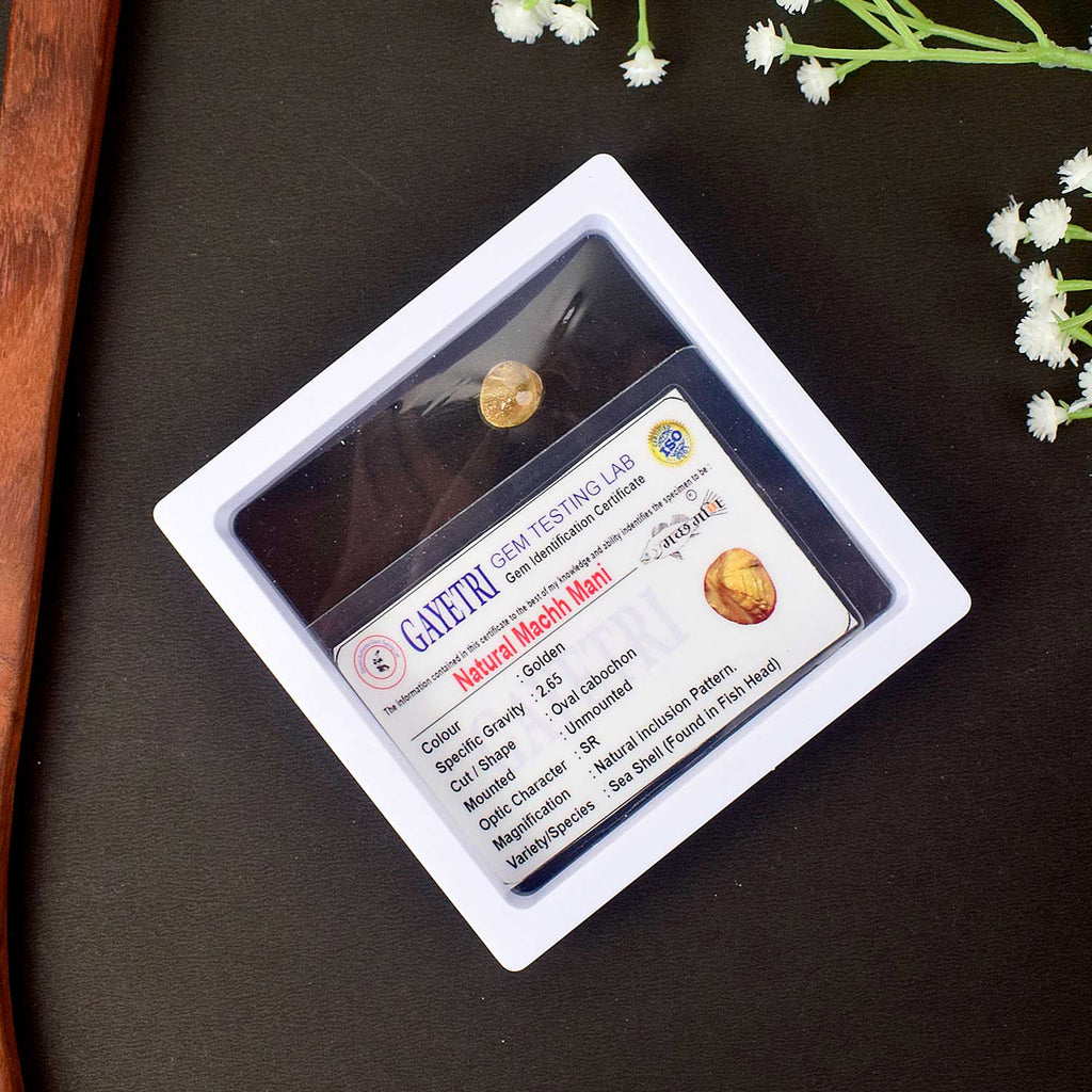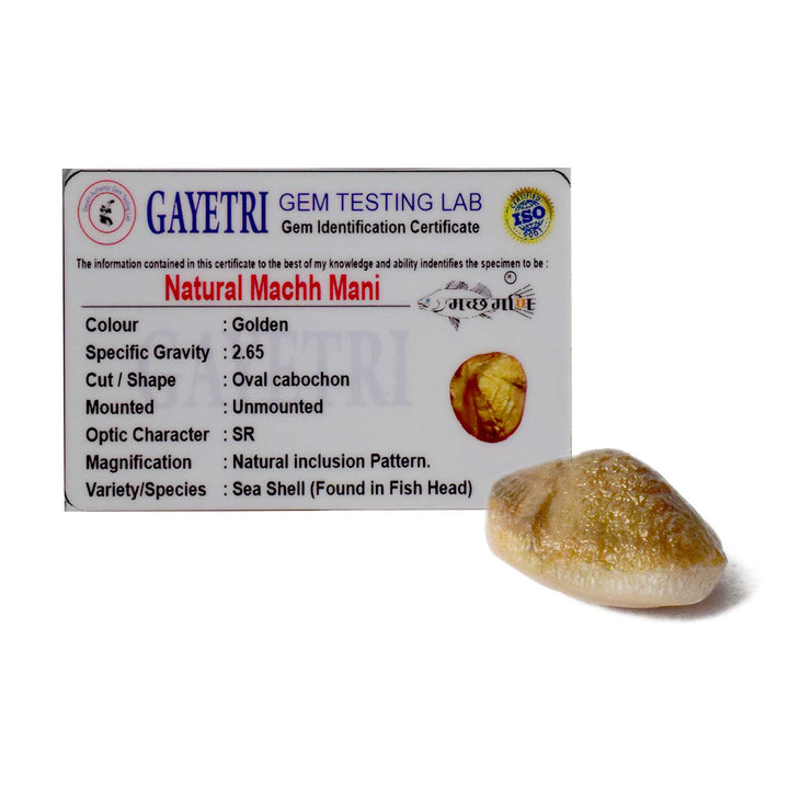 • Item Name: Certified Natural Machmani / Machh Mani in Golden Finish