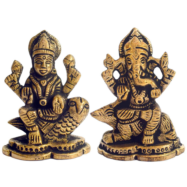 Puja Room Decor | Brass Gift Item for Housewarming | Handmade Brass Lakshmi Ganesha Idol | Antique Finish  Lakshmi Ganesha Idol | Home Temple Decor | Lakshmi Ganesha Car dashboard Idol