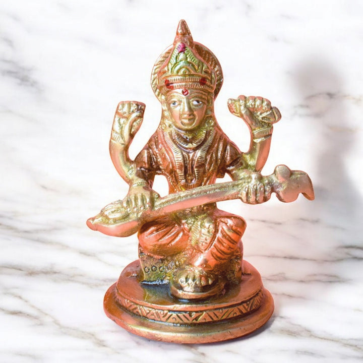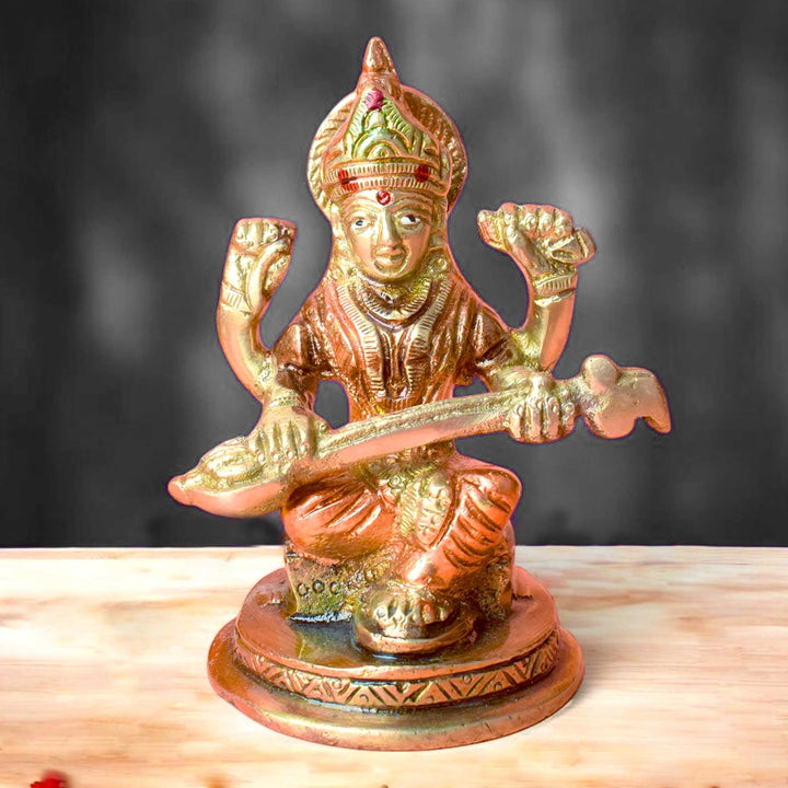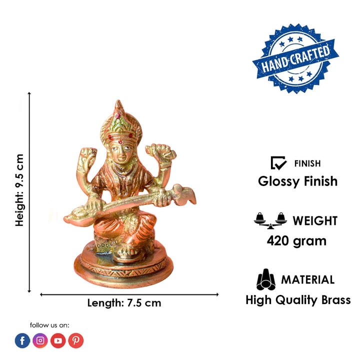 • Material: The Saraswati Mata Murti is made from High-Quality Brass Material