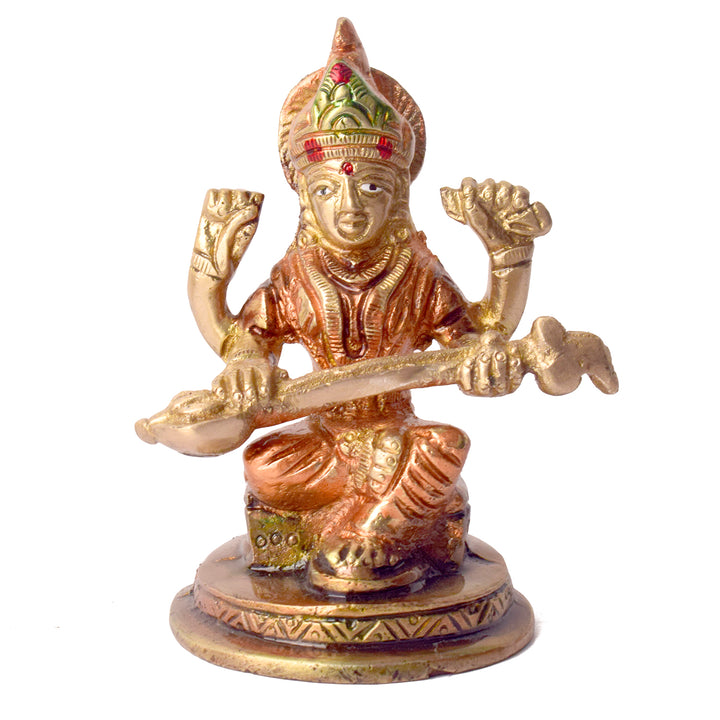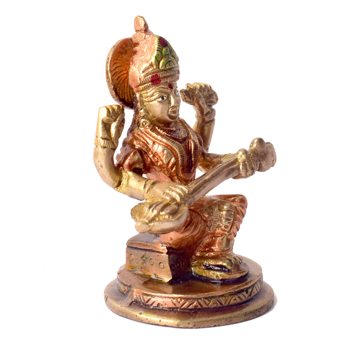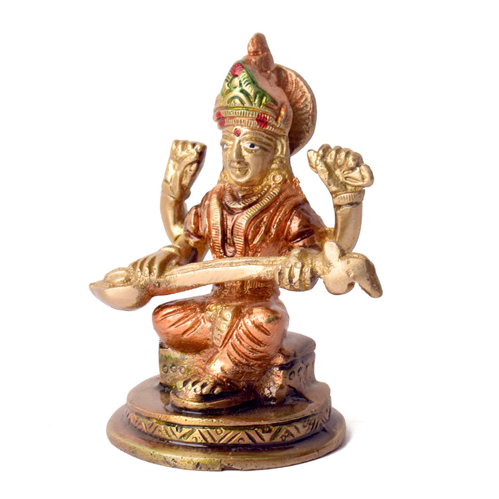 3.7 Inch Exquisite Handcrafted Brass Saraswati Idol