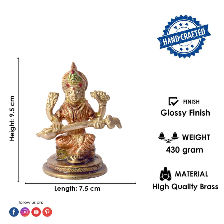• Material: The SaraswatiΒ Mata Murti is made from High-Quality Brass Material