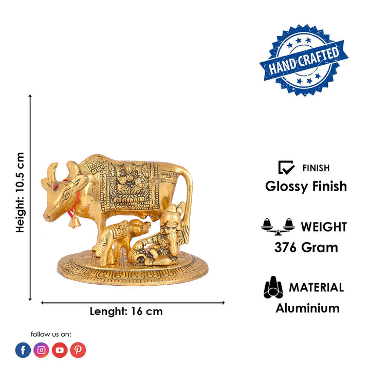 Product Name: 4.9 Inch Divine Kamdhenu Cow with Laddu Gopal and Calf