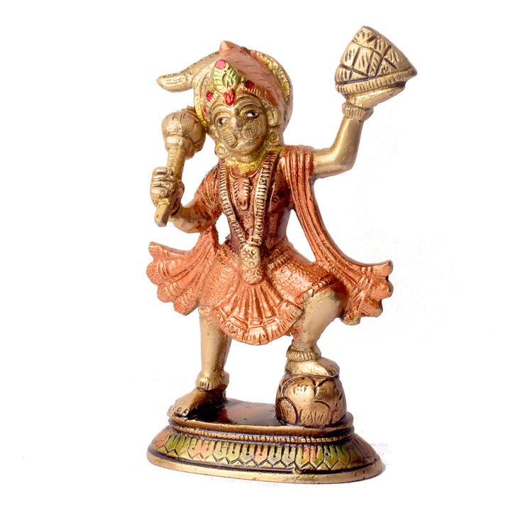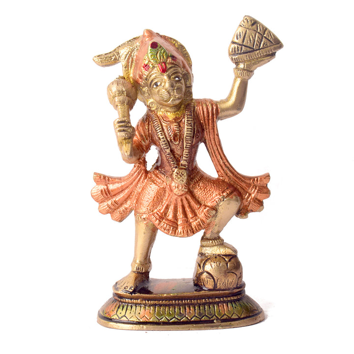 5.5 Inch Radiant Colored Brass Sanjivani Hanuman Idol