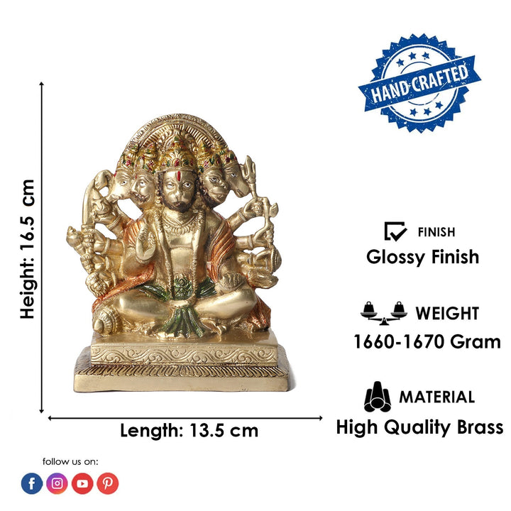 • Item Name: 6.5 Inch Pure Brass Sitting Panchmukhi Hanuman Idol.