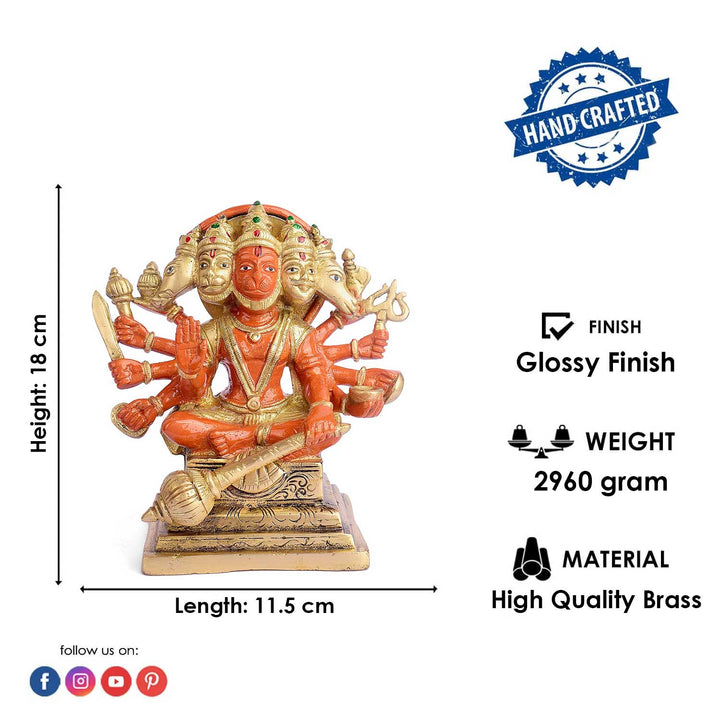 • Item Name: 7.1 Inch Panchmukhi Hanuman Brass Idol | Kesari Nandan Statue