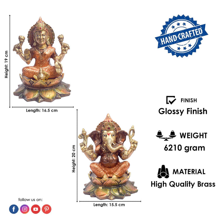 • Item Name: 7.5 Inch Elegant Brass Lakshmi Ganesh Idol