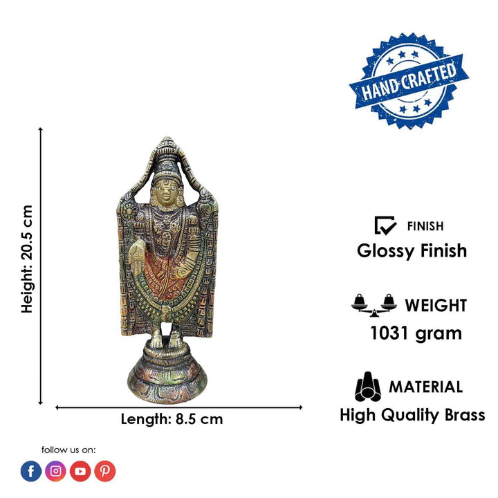 • Material: The Tirupati Balaji Idol is made from Pure Brass Virgin Material.