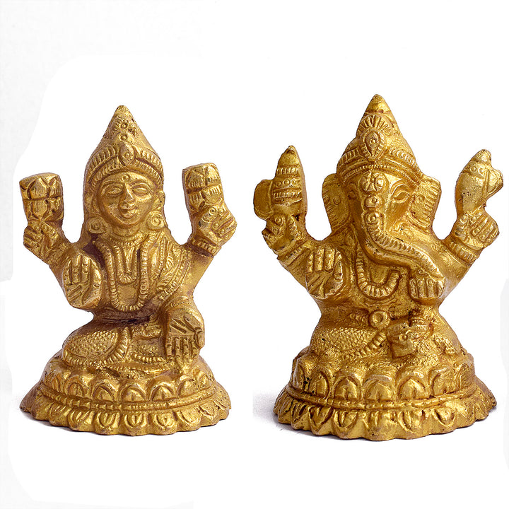 3.1 Inch Pure Brass Laxmi and Ganesh Pair Idol