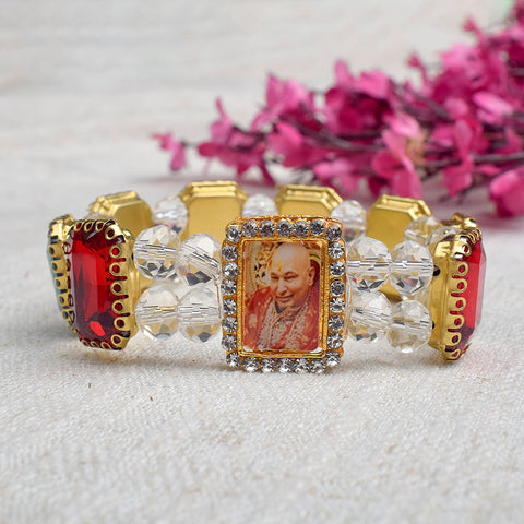 Immerse yourself in the divine aura of Guruji with our intricately designed Swaroop posters. These posters capture the essence of Guruji's spiritual energy, creating a sacred ambiance in your space. - Guruji Swaroop Bracelet: