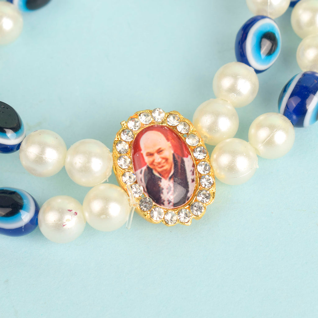 Item Name: White Pearl with Evil Eye Double Layer Guruji Swaroop Bracelet