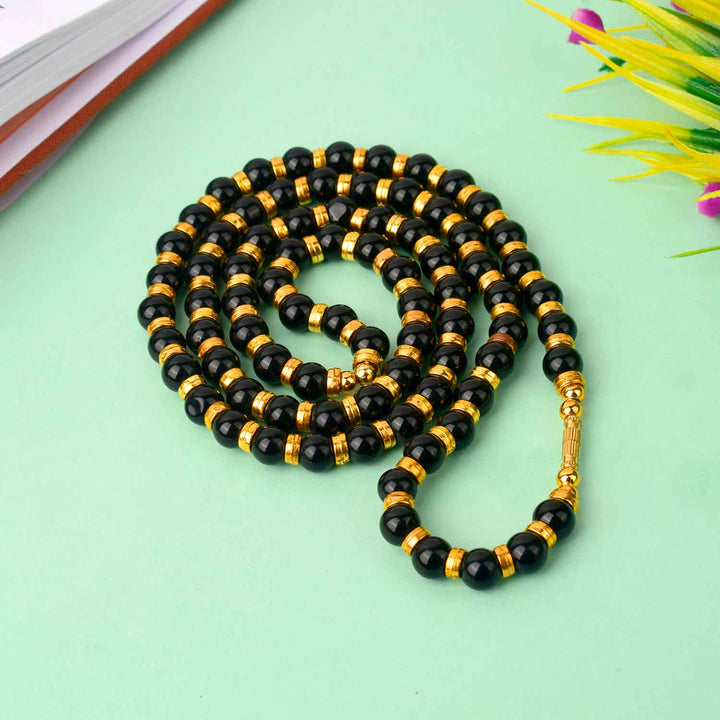 β€’ Item Name: Jai Guruji Swaroop Mala – Black & Golden Beads