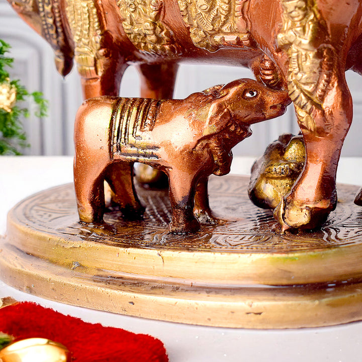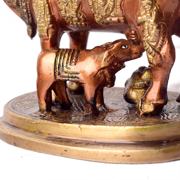 4.9 Inch Divine Brass Kamdhenu Cow with Calf Idol for Spiritual Home Décor