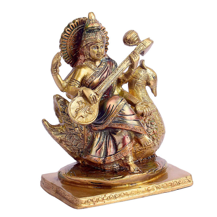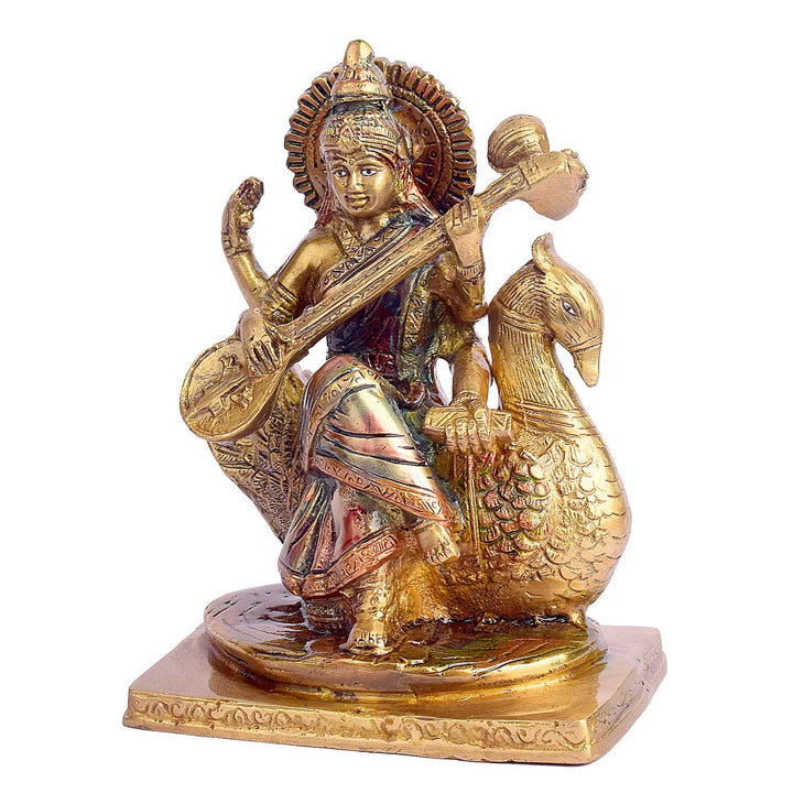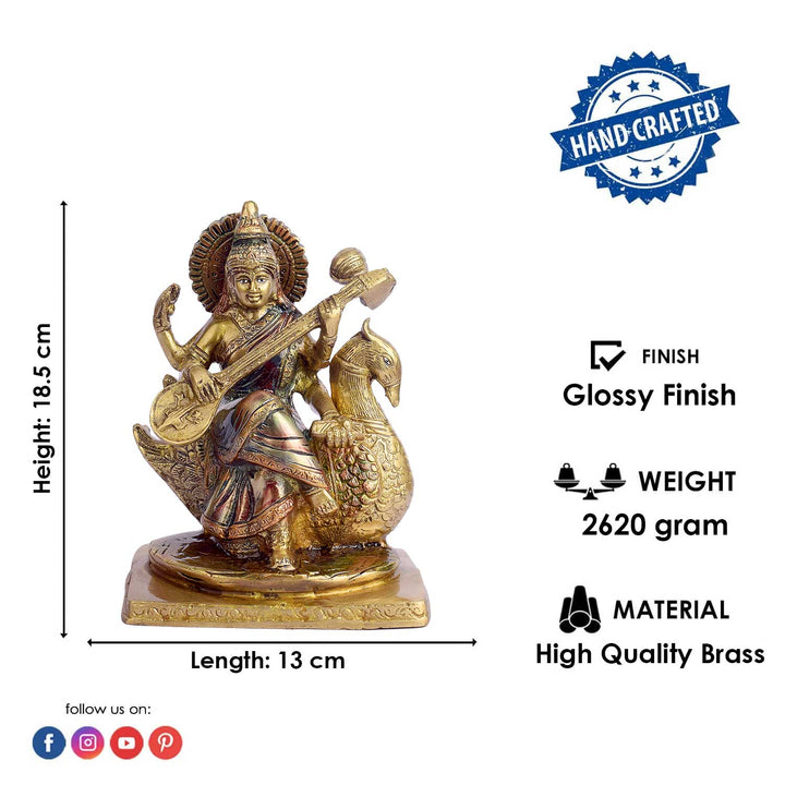 • Material: The Saraswati Mata Murti is made from High-Quality Brass Material
