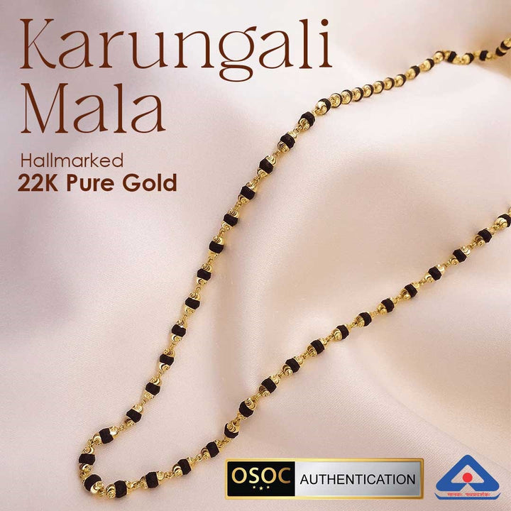 Hallmarked 22K Pure Gold Govt. Certified Karungali Mala/ Black Ebony Beads