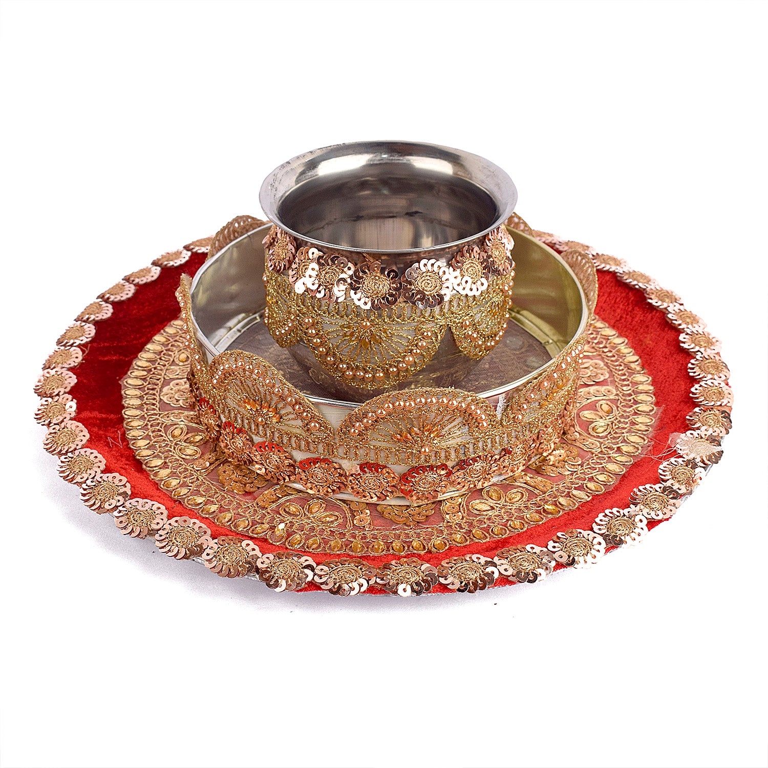 Bright Red Karwa Chauth Thali Set | satvikstore.in