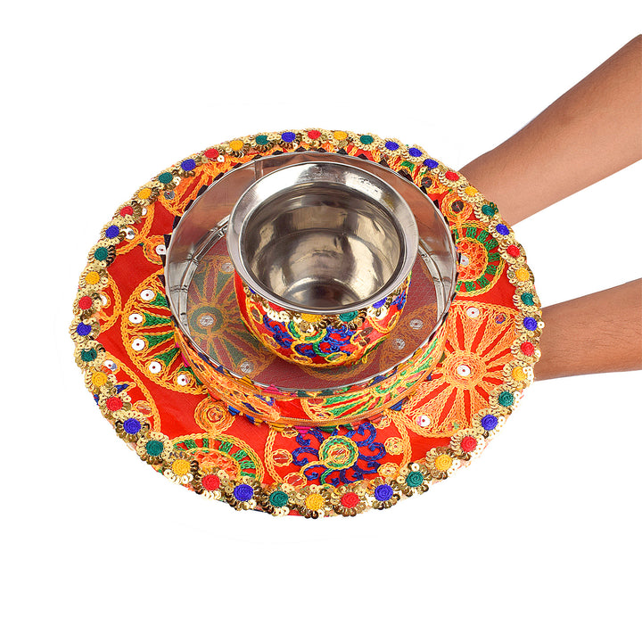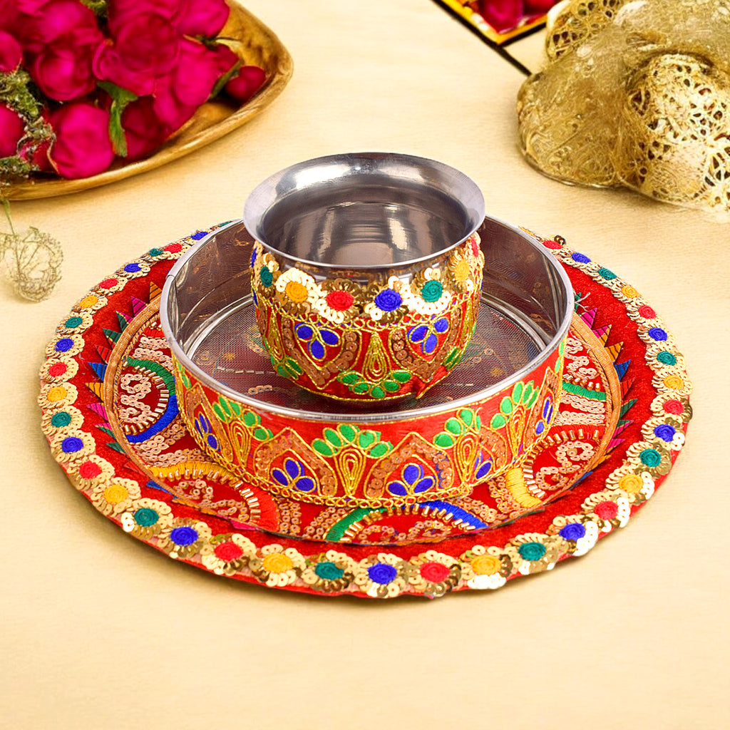 Festive Colorful Karwa Chauth Thali Set - 3pc