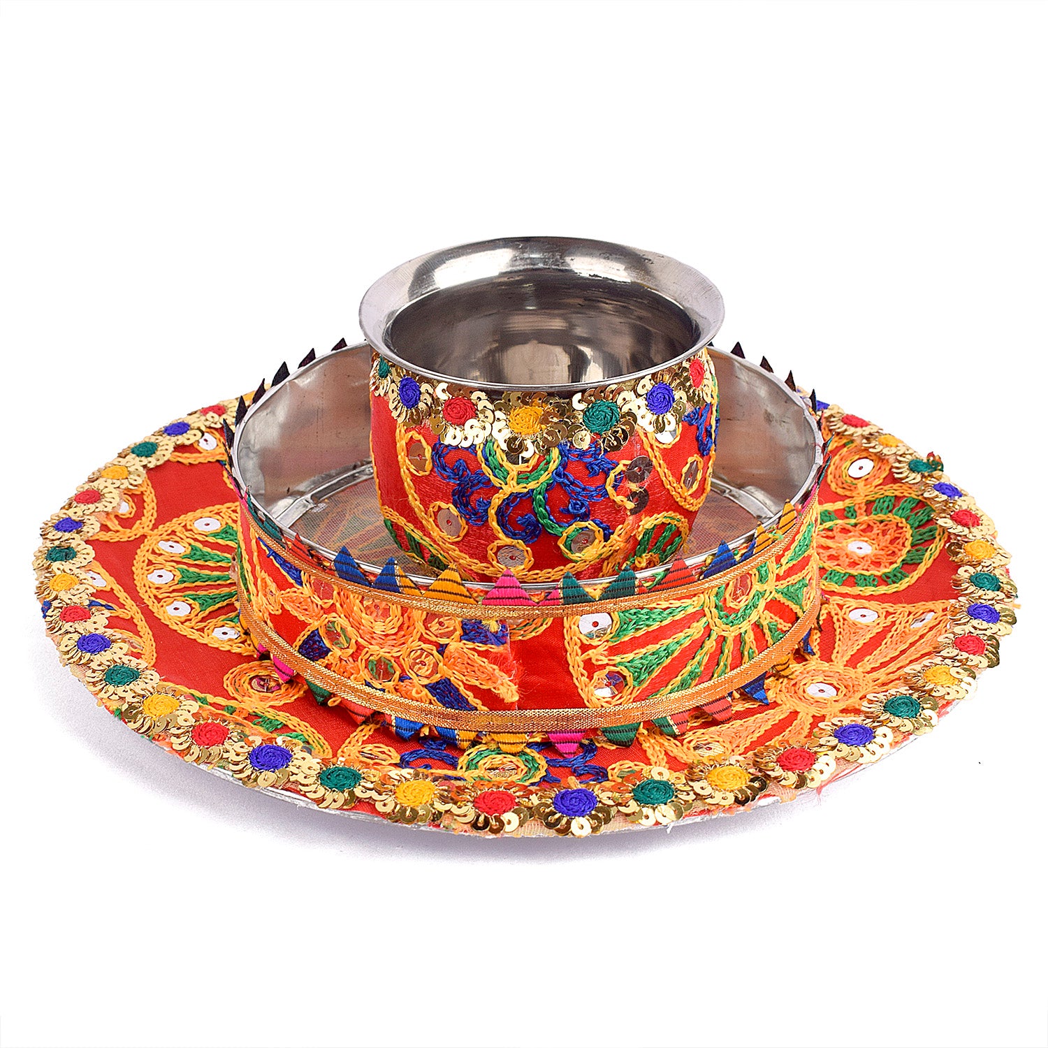 Festive Colorful Karwa Chauth Thali Set - 3pc|shop at satvikstore.in
