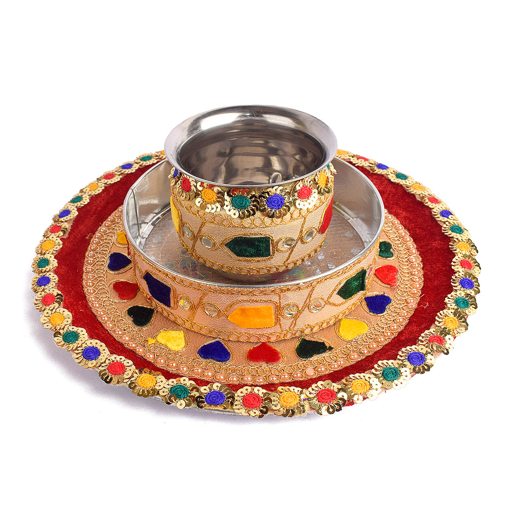 Item Name: Radiant Multicolor Karwa Chauth Thali Set- 3pc