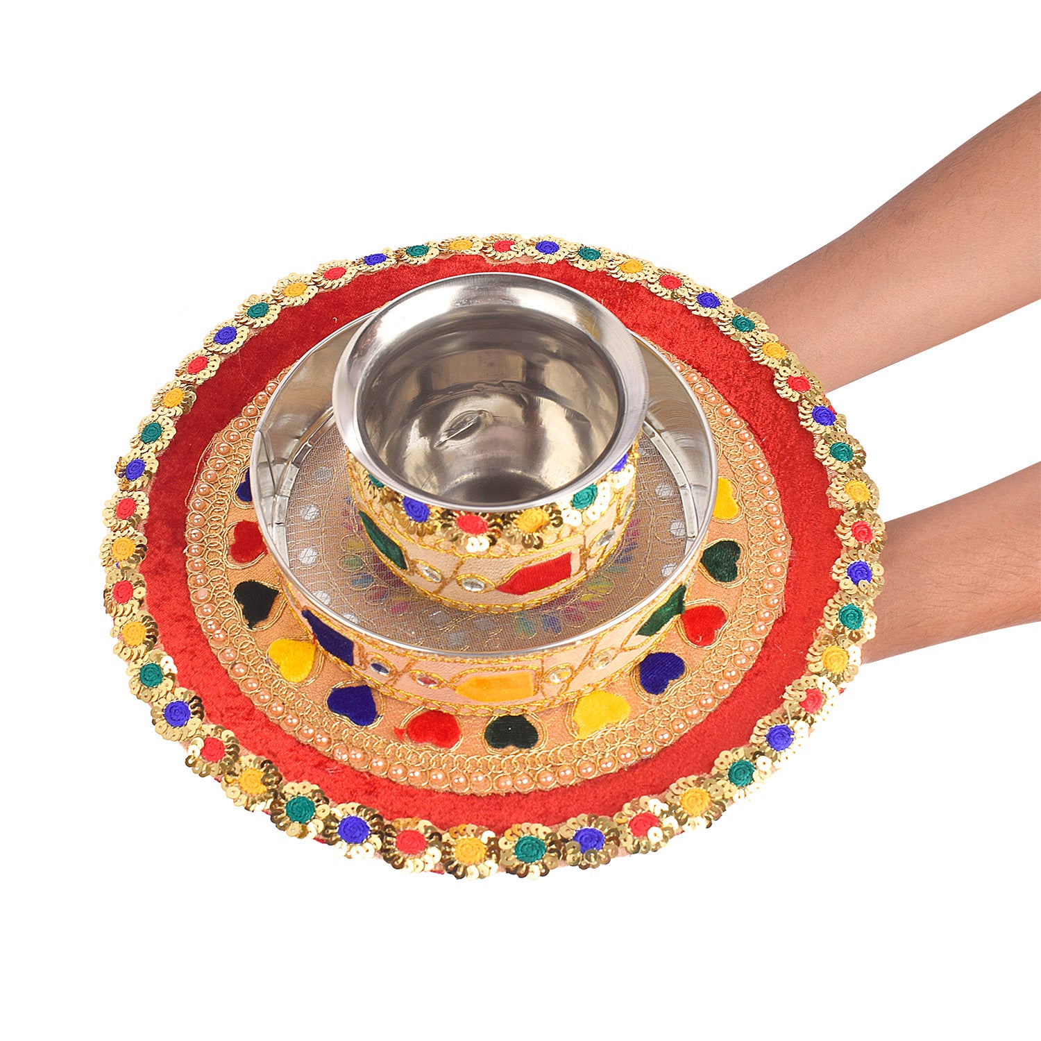 Radiant Multicolor Karwa Chauth Thali Set- 3pc|satvikstore.in