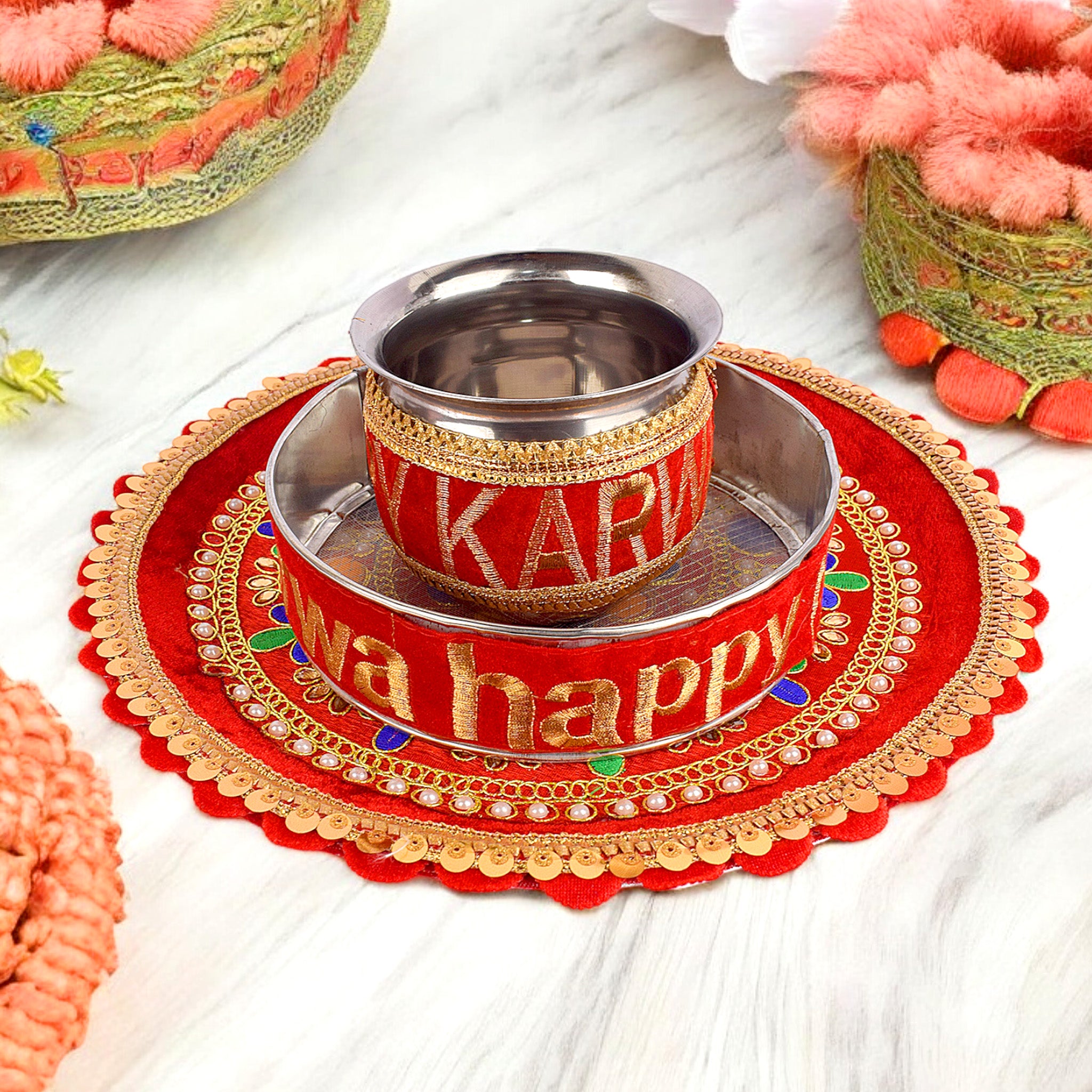 Vibrant Happy Karwa Chauth Thali Set | satvikstore.in