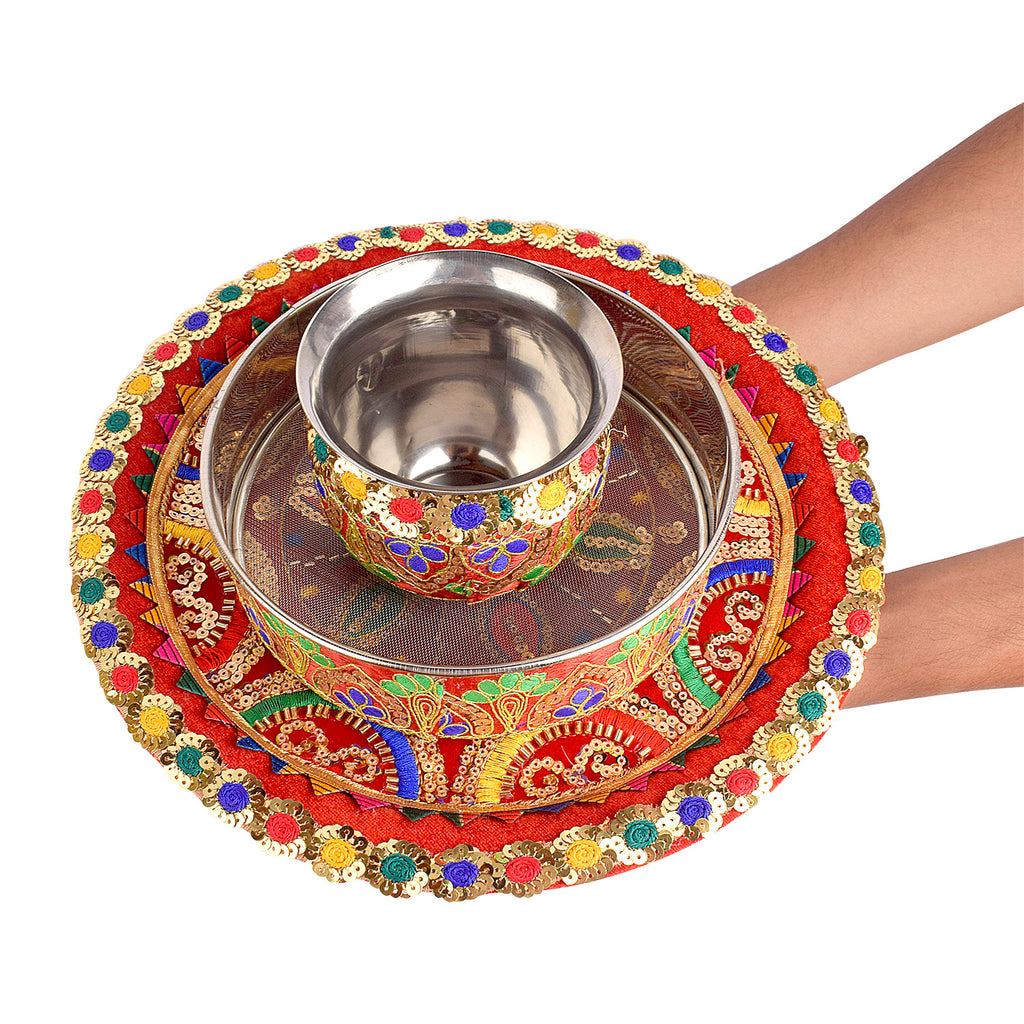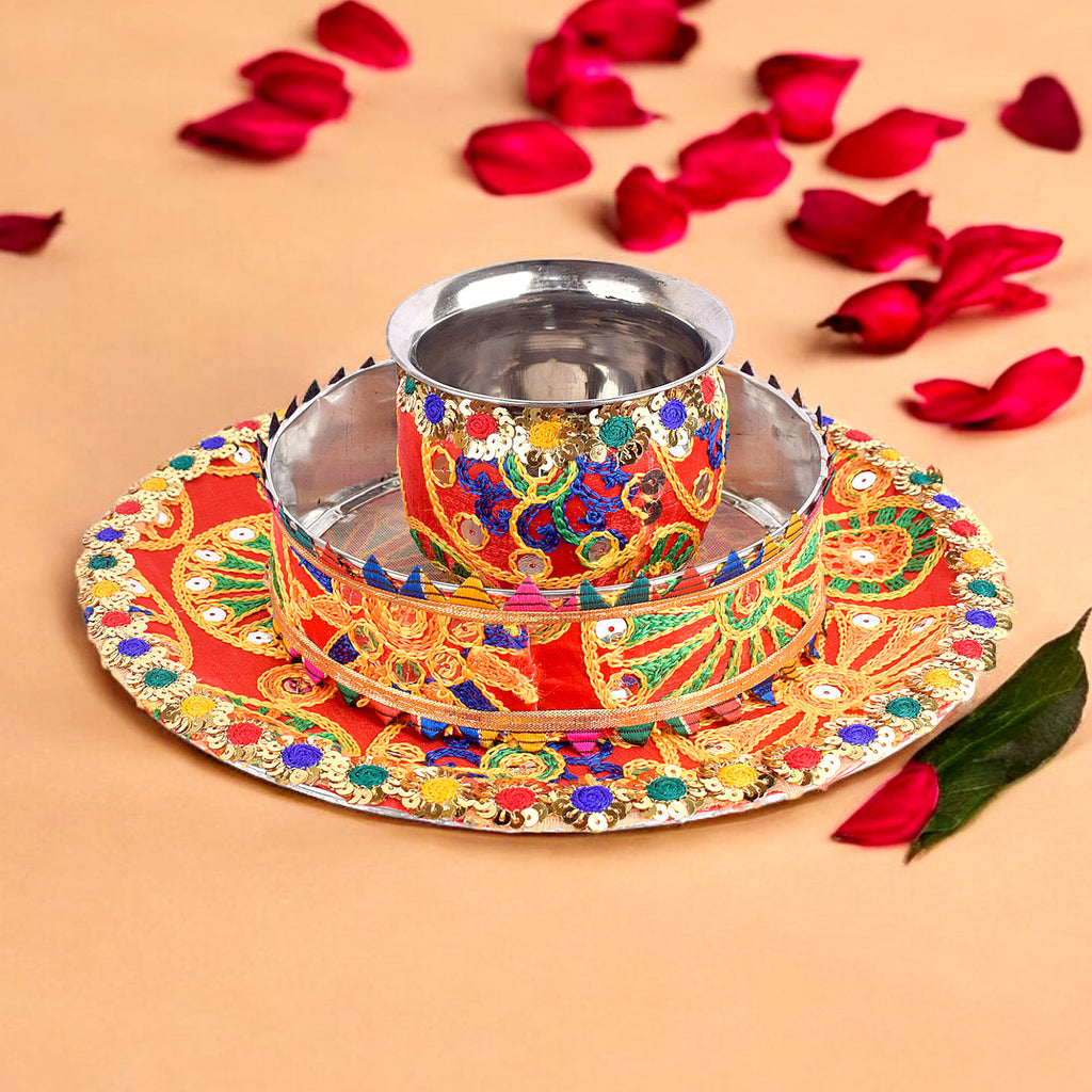 Vibrant Traditions Multicolor Karwa Chauth Thali Set - 3pc|satvikstore.in