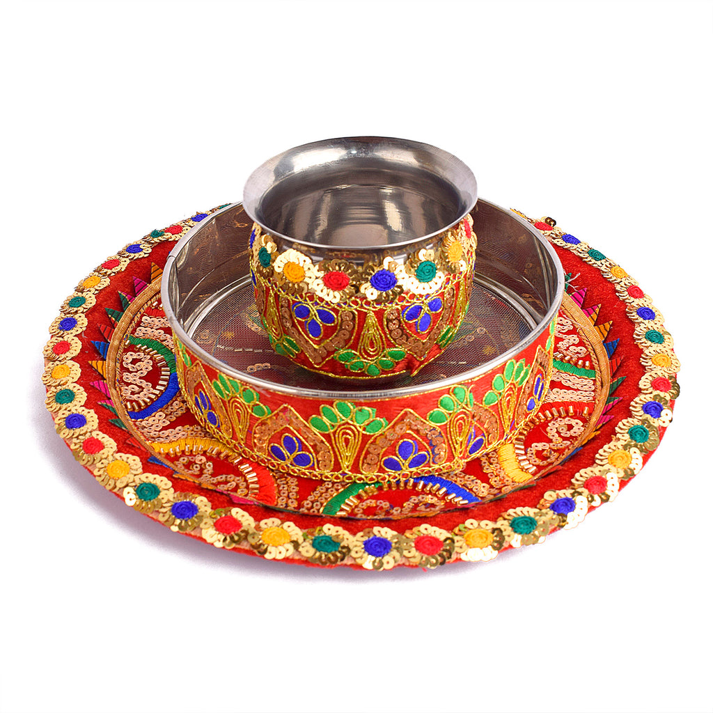 Item Name: Vibrant Traditions Multicolor Karwa Chauth Thali Set - 3pc