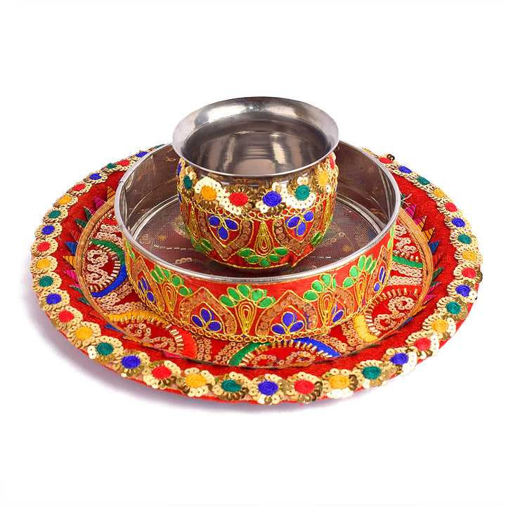 Vibrant Traditions Multicolor Karwa Chauth Thali Set - 3pc
