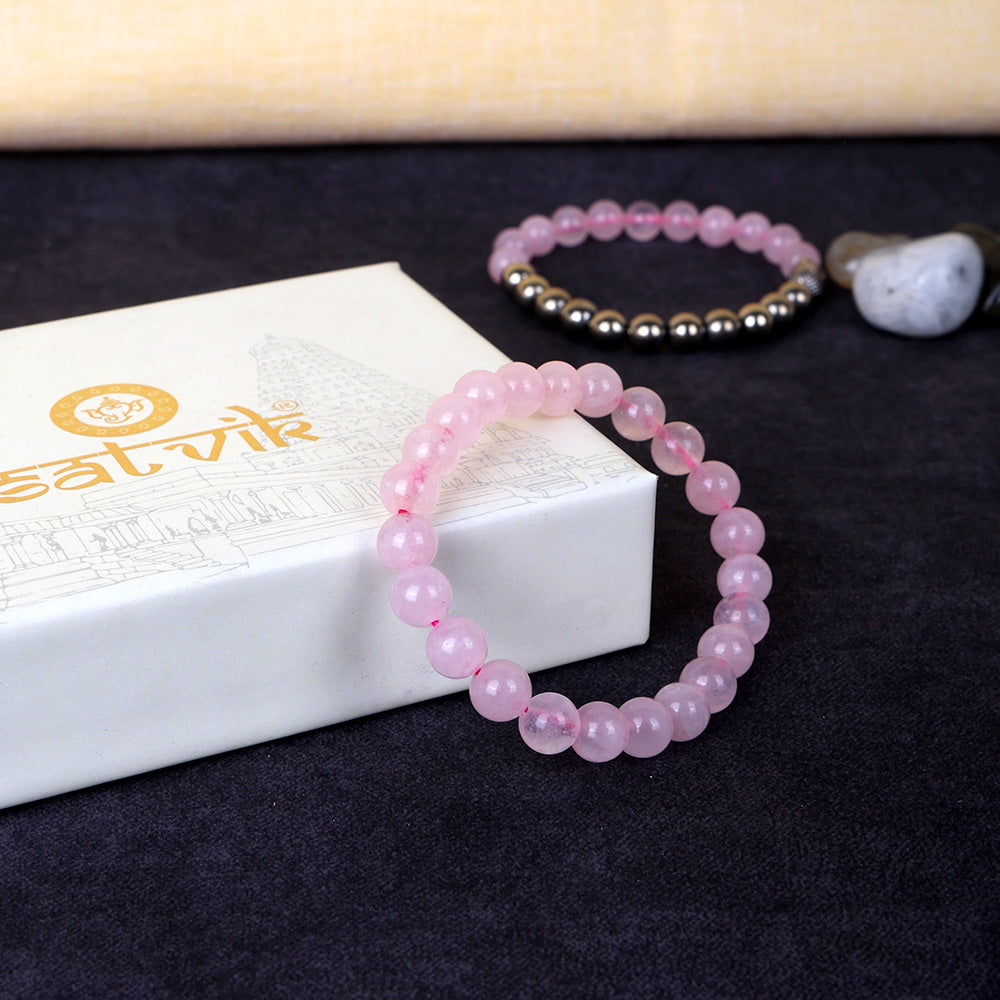 Buy Rose Quartz Round Bead Healing Stone Bracelet | Satvikstore.in – satvikstore.in
