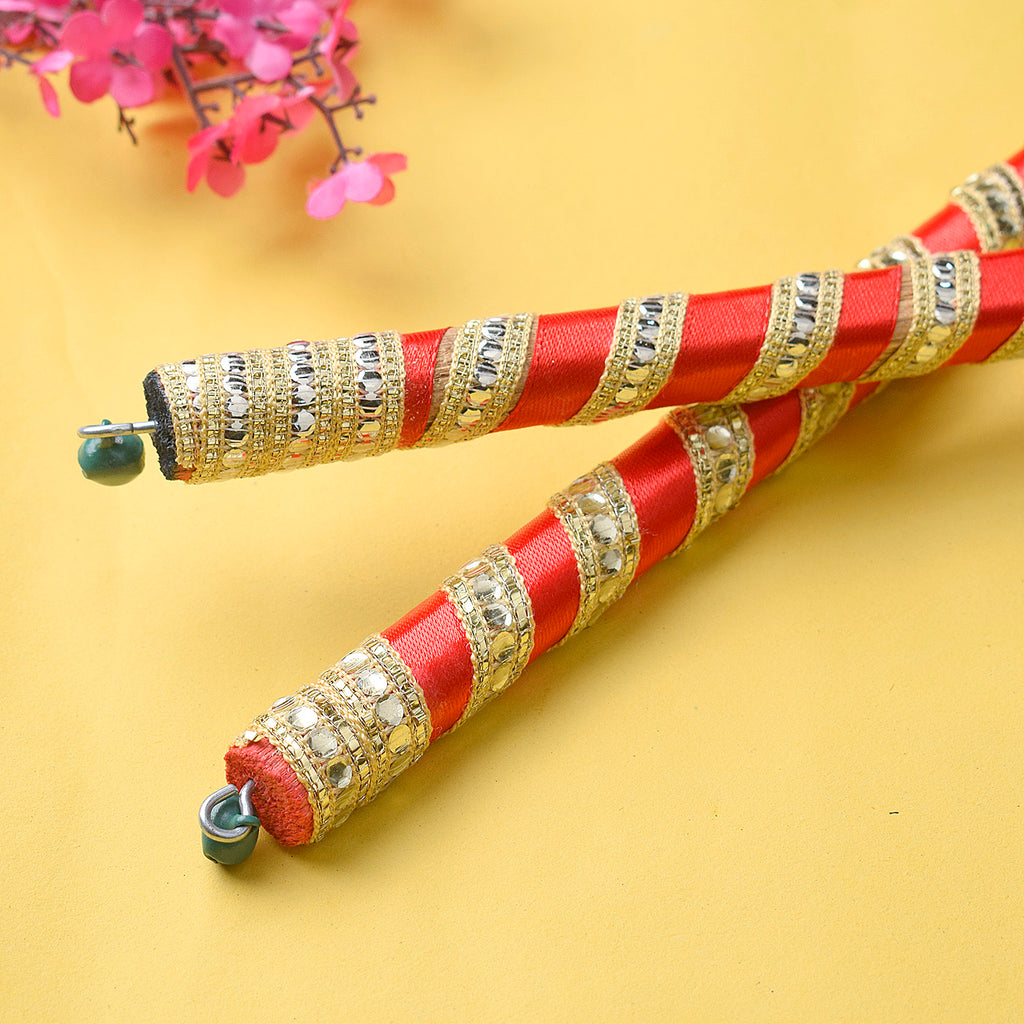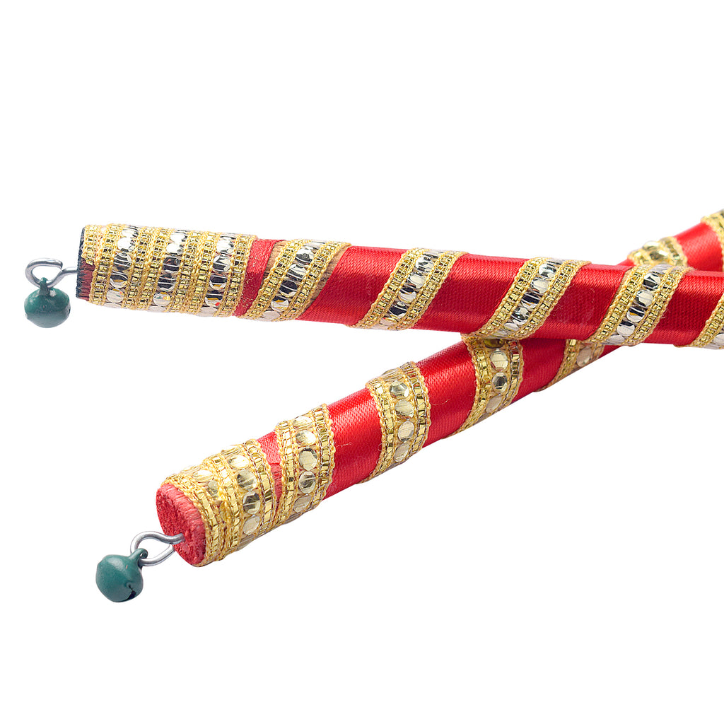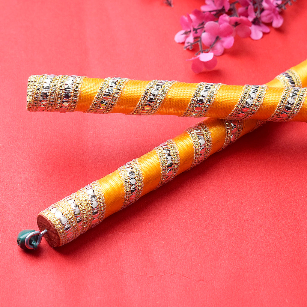 • Material: The Dandiya Sticks are made from High Quality Wooden Sticks , Decorated with Lace Work all over the Dandiya Sticks to give it more Festive Look.
